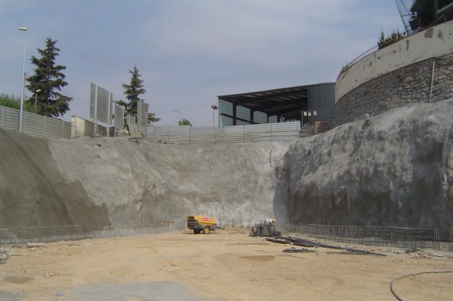 Talud en gunite, hormigón proyectado (ST. ESteve de Sesrovires) para contención de tierras, con ello se evitan desmoronamientos del terreno debidos a desprendimientos producidos por fenómenos atmosféricos (lluvias, viento, oxidación…)